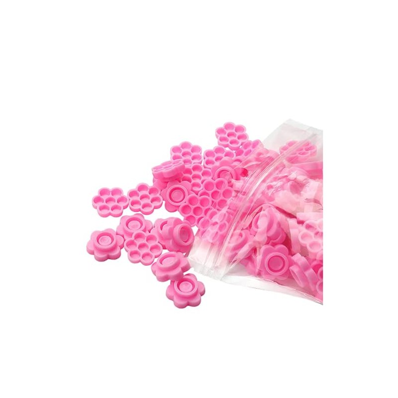 KDDOM 100 Pcs Eyelash Extension Glue Holder Eyelash Glue Cup Flower Shape Glue Cup Tattoo Ink Cup(Pink)
