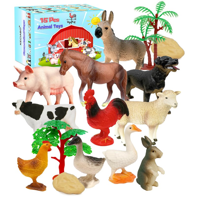 KECIABO Farm Animals Toy, 15 Pieces Plastic Farm Animals Figurines, Educational Learning Farm Playset Toys for Boys Girls Kids Toddlers…