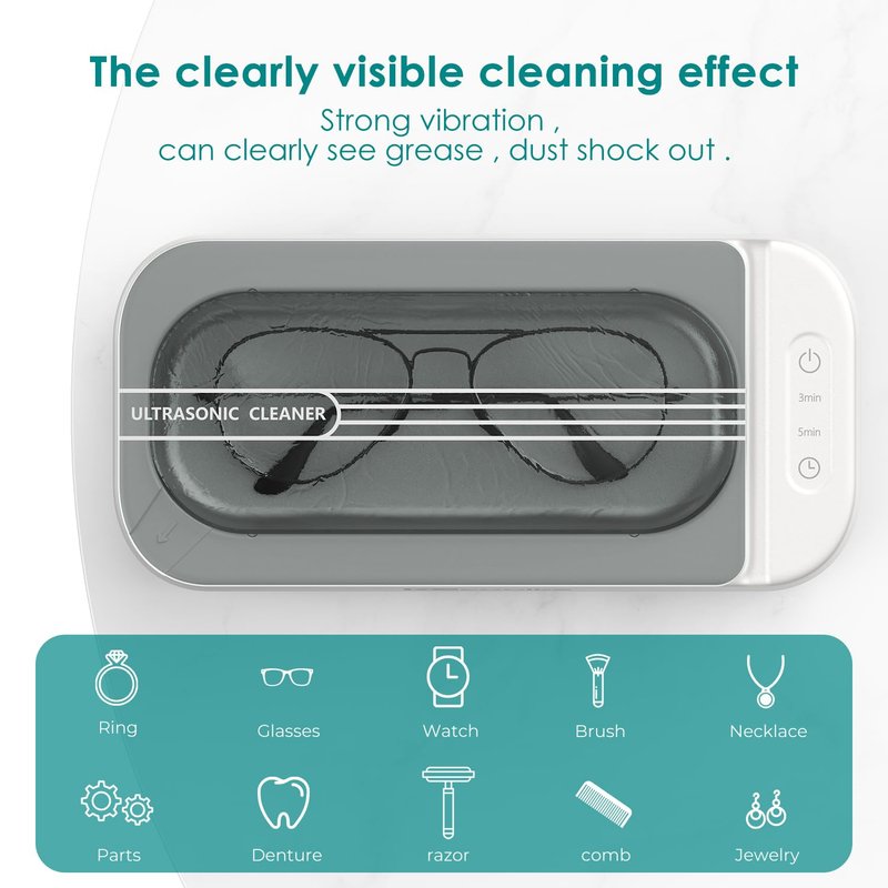 - Cleaning All Kinds of Items: professional cleaning solutions for jewelry, glasses, watches, rings, necklaces, coins, razors, dentures, tools, parts, instruments, etc.If there is a protective film on your glasses, please use it with caution. It is best to choose a use time of less than 180s