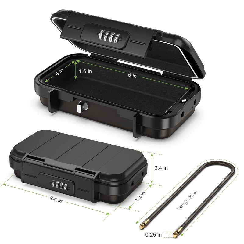 - LARGE STORAGE CAPACITY: With a large storage space, this portable safe is best suited for protecting smartphones, passports, cash, credit cards, MP3 players, and other compact but expensive that are especially vulnerable to theft.