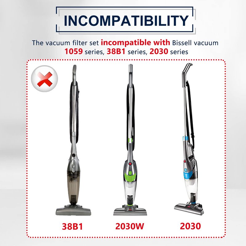 - NOT FOR THE FOLLOWING VACUUMS: bissell 1059 Series, 38B1 Series, 38BJ1, 2030 Series