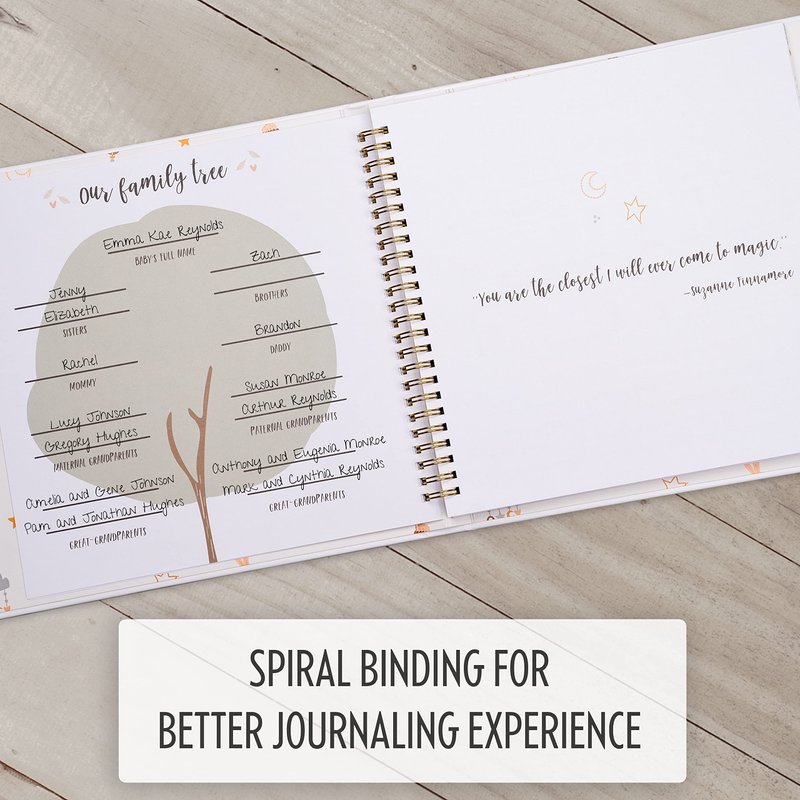 - Beautiful Baby Book For Lasting Memories: From where the grand family adventure began to all the big milestones of your little one - thanks to the baby keepsake book you can keep precious moments from pre-birth through to the first 5 years collected in one place!