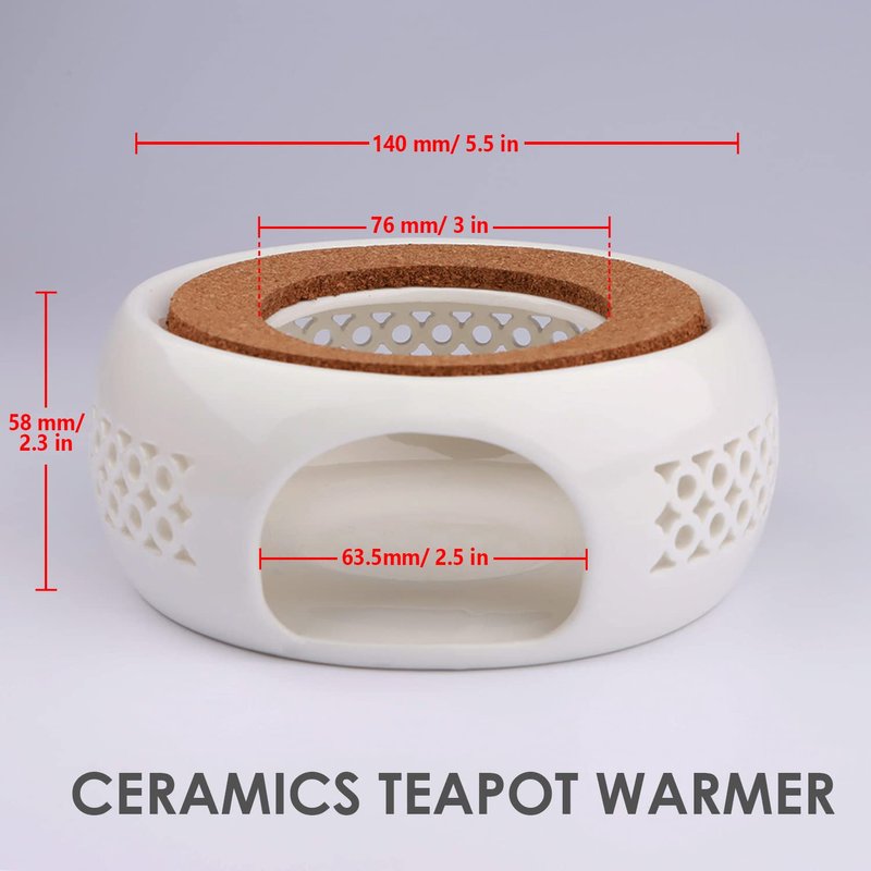 - This premium quality ceramic tea warmer is great for teapots and tea kettles. It also Includes a cork cushion for heating safely with all your expensive teapots.