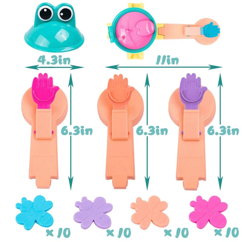 - 🐸【PLAY INTRODUCTION】One person choose a color, turn on the switch, let the frog turn up, put the bug on the catapult, and pop the bug into the frog's mouth, whoever pops in the most wins.