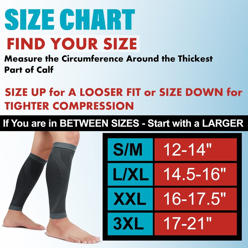 Premium Fabric: Our calf compression sleeve feature breathable, moisture-wicking fabrics that keep your muscles warm in cold temperatures, wicking sweat and keep you dry and odor-free in high temperatures.