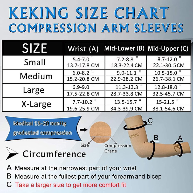 - ✅ 🔥【Therapeutic Compression】 - KEKING will bring you well-designed medical compression arm sleeve that provides 15-20mmHg graduated compression, use for tendonitis elbow brace or pain in bicep, elbow or forearm, arthritis, osteoporosis and more; Rehabilitation, physical therapy; Ideal for wearing post-surgery and post-injury for muscle and joint support to reduce swelling, alleviating symptoms of joint pain, keep joint stability; You will notice the change if you’re wearing them a few hours.
