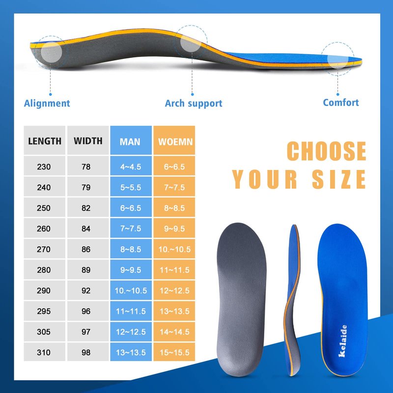 - 【PREMIUM ARCH SUPPORT INSOLES】Kelaide arch support shoe inserts created using a premium quality TPU support, medium density lightweight EVA , premium fiber top cover, advanced heel cushioning and shock absorbing forefoot , with these insoles offer both long-lasting durability and leading levels of comfort