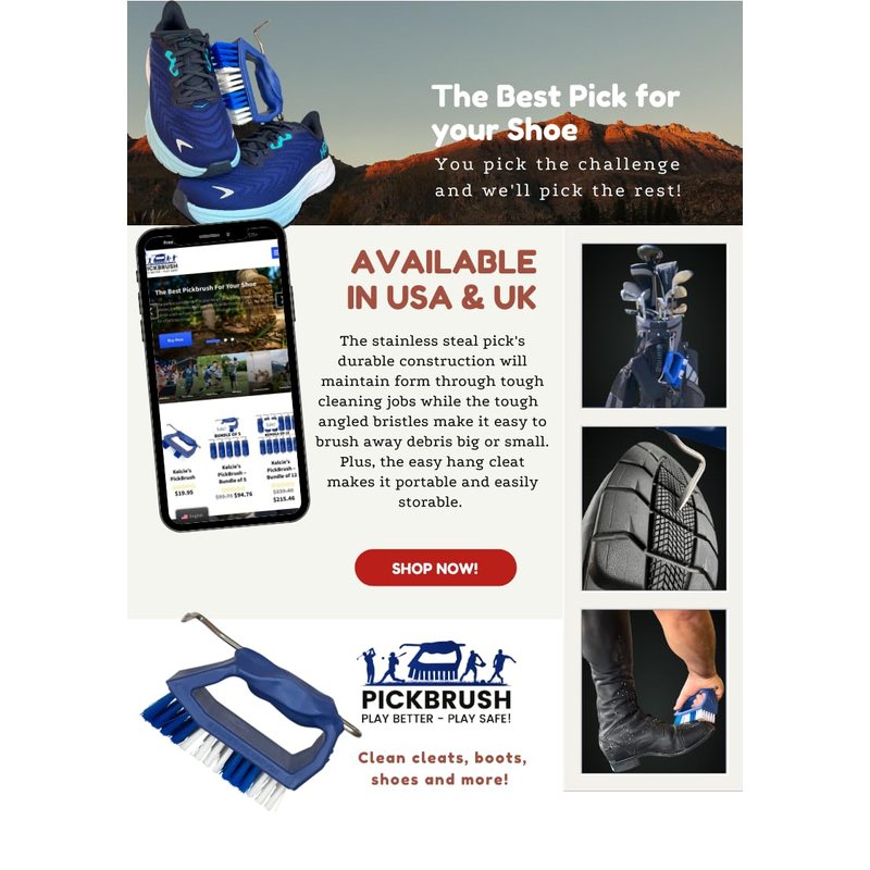Kelcie's Pick Brush is a highly efficient blue boot and shoe cleaner designed for all ages. It simplifies the process of cleaning boots and footwear, ensuring the highest quality and durability. Made with hardened stainless steel, it withstands tough cleaning jobs without losing its form. The advanced technology and tough angled bristles make it easy to brush away debris of all sizes. The hand-operated design and easy-hang cleat provide convenience and portability. Kelcie's Pick Brush is suitable for all ages and perfect for maintaining clean and well-maintained footwear.