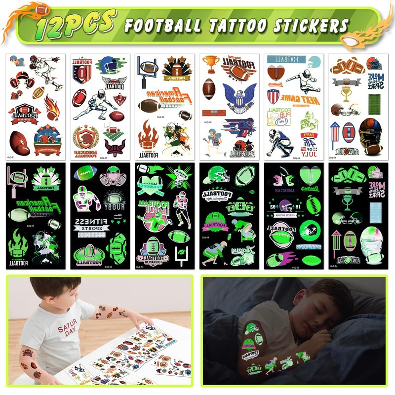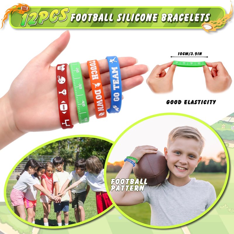 - FUN-FILLED FOOTBALL PARTY FAVORS KIT: Are you planning a football-themed birthday party for your little sports fan? Our football party favors for kids kit is your best choice! The set includes 12 football drawstring backpacks(8 styles), 12 football silicone bracelets, 12 football keychains and 12 football tattoos stickers. Get ready to surprise your friends with these awesome football-themed favors