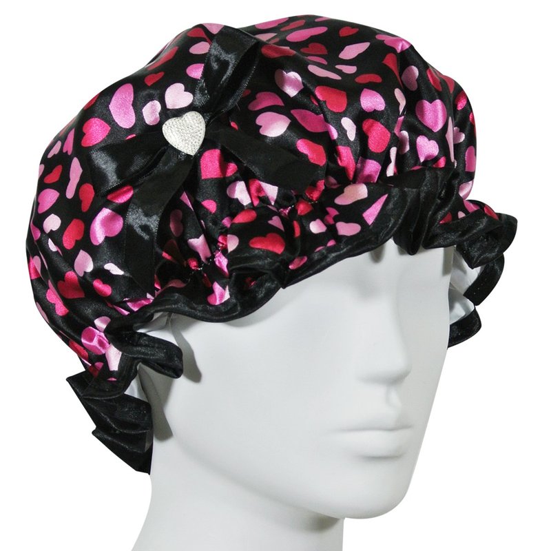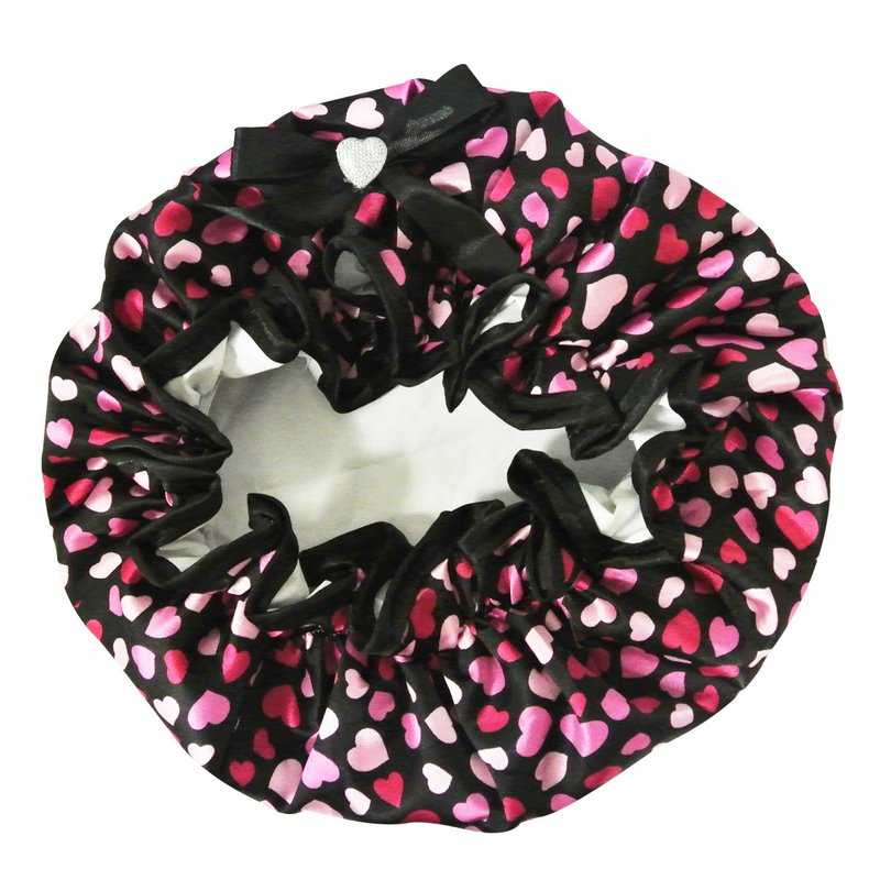 Kella Milla Stylish Satin Shower Cap - Hearts & Black Bow