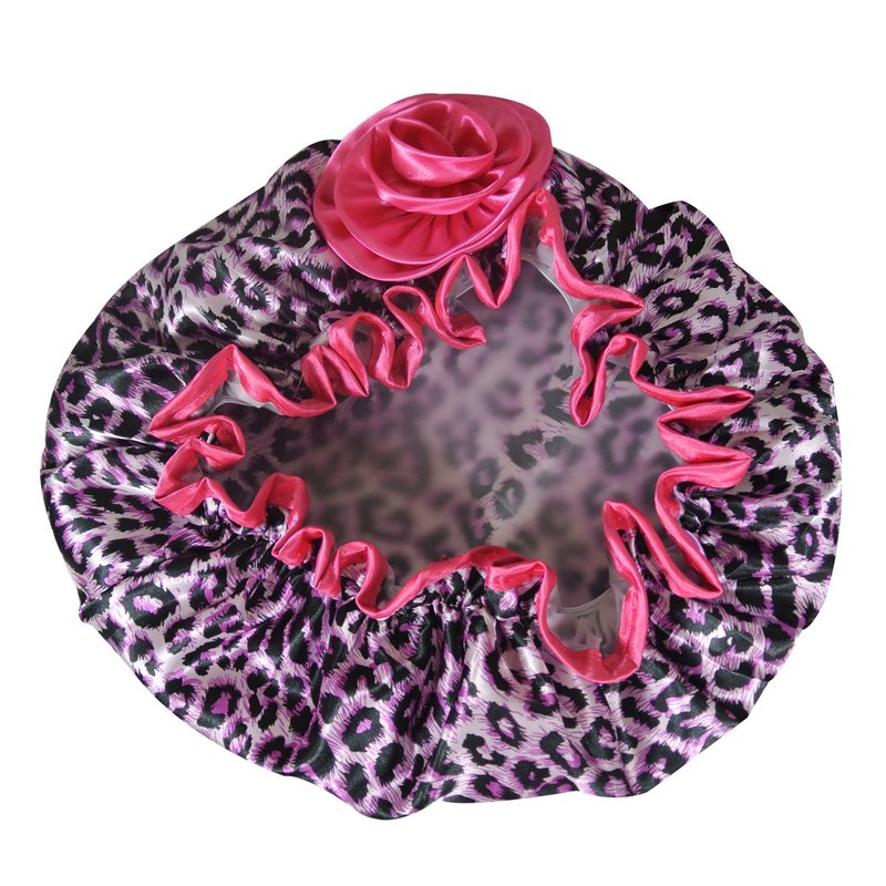 Kella Milla Stylish Satin Shower Cap, Pink Leopard