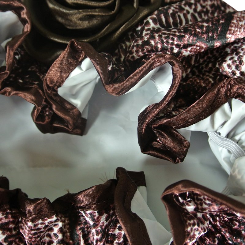 Pamper yourself with this Satin Shower Cap, the perfect spa accessory for your bath and beauty needs! This shower cap keeps your hair dry with waterproof vinyl under the stylish satin design while your are bathing or showering. The elastic band allows the cap that comfortably fit all head and hair sizes. You can also wear the cap to keep your hair in place while you sleep. Available in a variety of fun and sassy patterns for the fashionista in you!