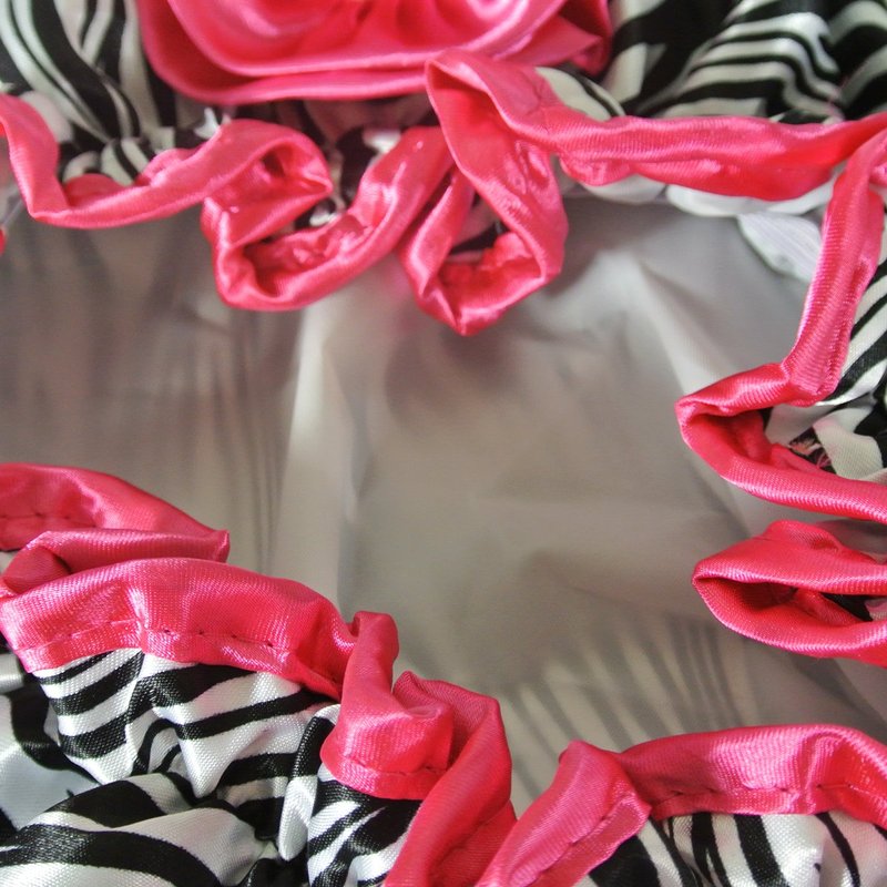 Pamper yourself with this Satin Shower Cap, the perfect spa accessory for your bath and beauty needs! This shower cap keeps your hair dry with waterproof vinyl under the stylish satin design while your are bathing or showering. The elastic band allows the cap that comfortably fit all head and hair sizes. You can also wear the cap to keep your hair in place while you sleep. Available in a variety of fun and sassy patterns for the fashionista in you!