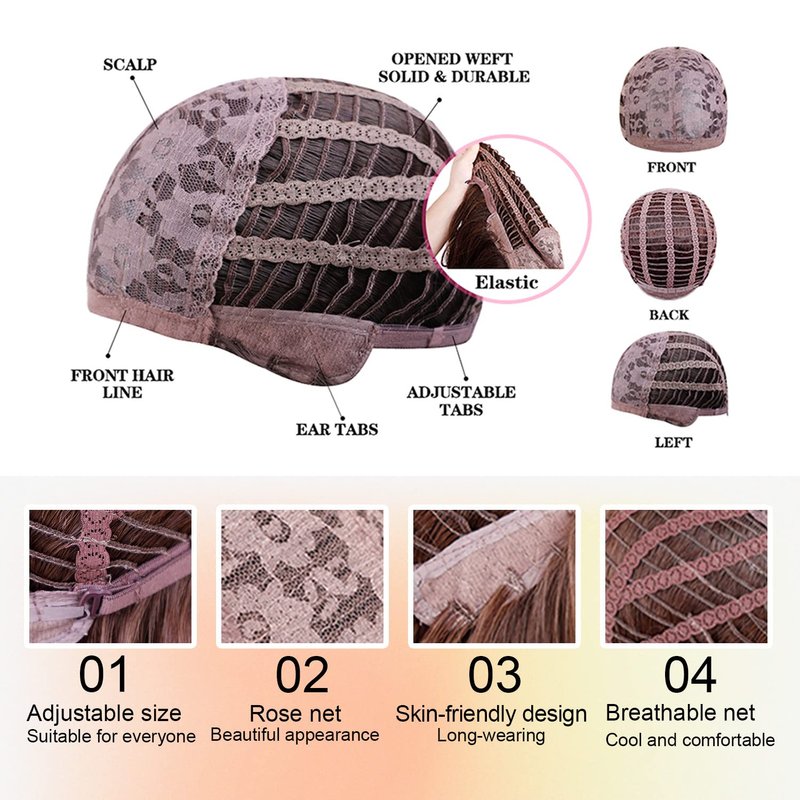 - Adjustable size: Medium Cap Size, Average Wig Cap Size is 22.5 Inches Circumference, with 2 Adjustable Straps inside. Adjust the Straps inside the cap to the correct size to suit your head. The breathable rose net cap will make you feel comfortable when you wear it.