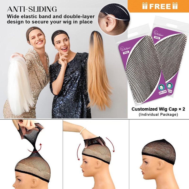 - Package Included: 1* High Quality Synthetic Wig + 2 pcs x Stretchable Elastic Nylon Best Wig Caps by Kellynee.Notice: Slightly Color Difference between Different Monitors and person comprehension.
