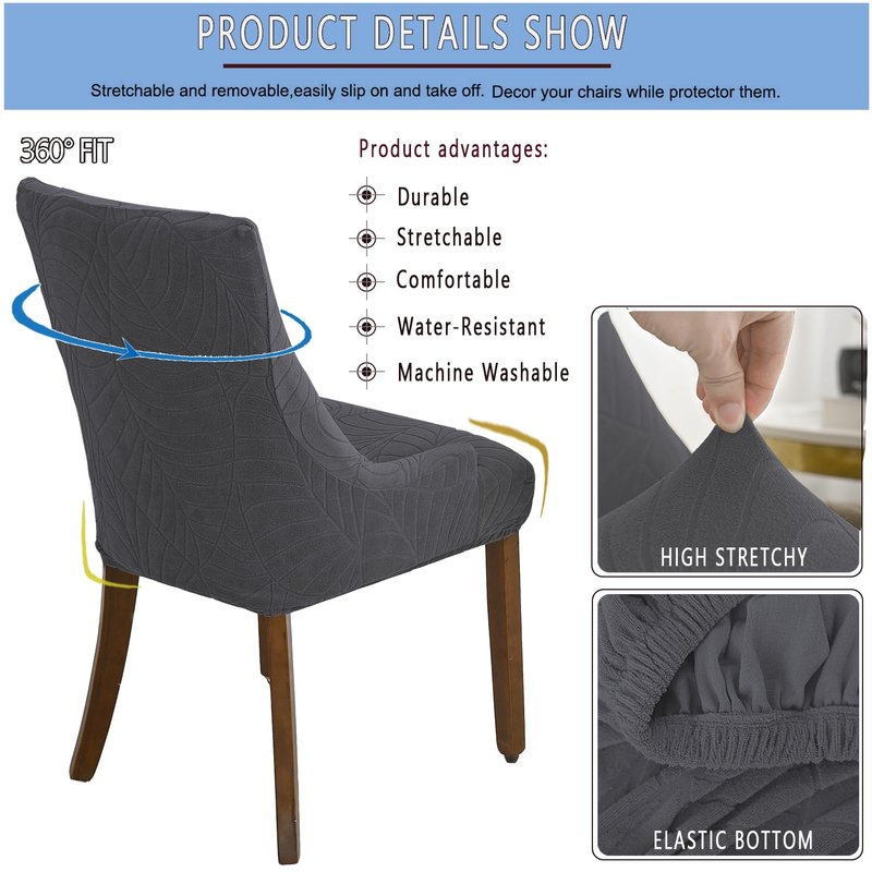 KELUINA Jacquard Waterproof Stretch Wingback Chair Cover Slipcover - Reusable Protector Cover for Dining Room Banquet Home Decor etc Machine Washable Hand Washable (Dark Grey,2PC)