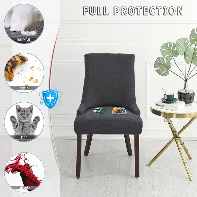 - Full Protector:Side chair slipcover Thick-enough to protect your chair from stain,wear, scratch and tear. LET YOUR OLD CHAIR LOOK LIKE NEW ONE AND MORE BEAUTIFUL. Also can prevent your chair from kids scribble or pet'scratch and bite.