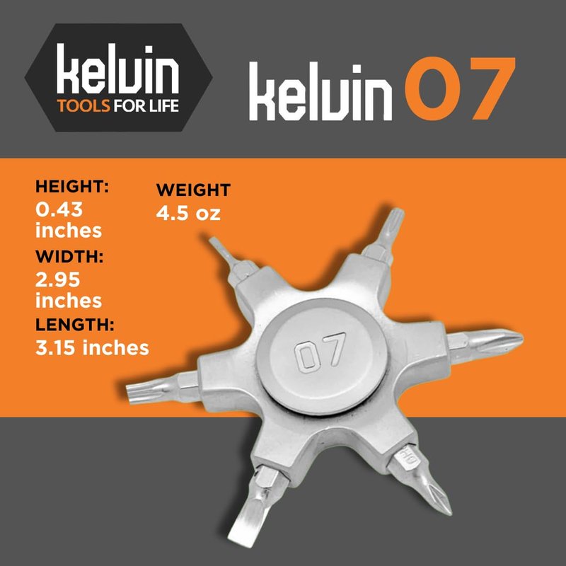 - The ideal travel companion: lightweight and practical, the Kelvin 07 serves as a travel screwdriver, perfect for quick fixes on the go, while also providing the stress-relieving benefits of a fidget toy spinner.