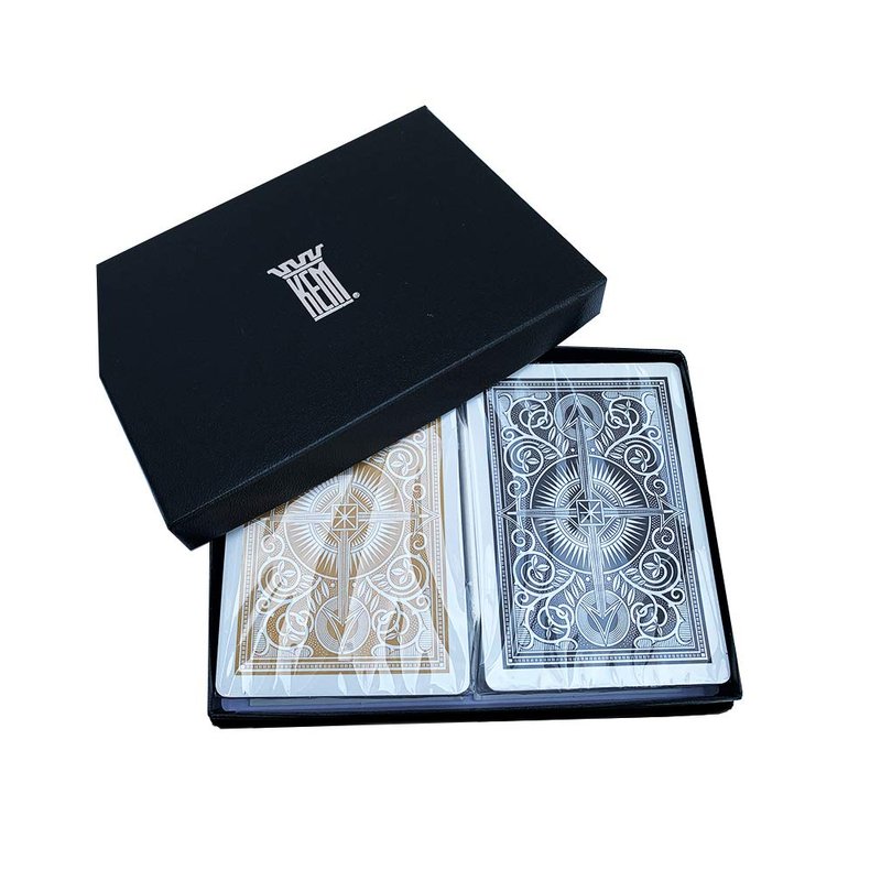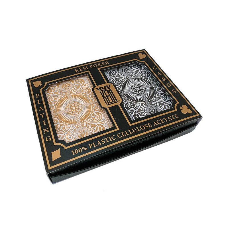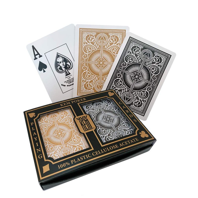KEM Arrow Poker Size Playing Cards: 2 deck set Black and Gold, Wide Jumbo Index
