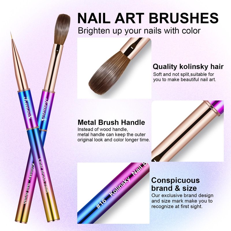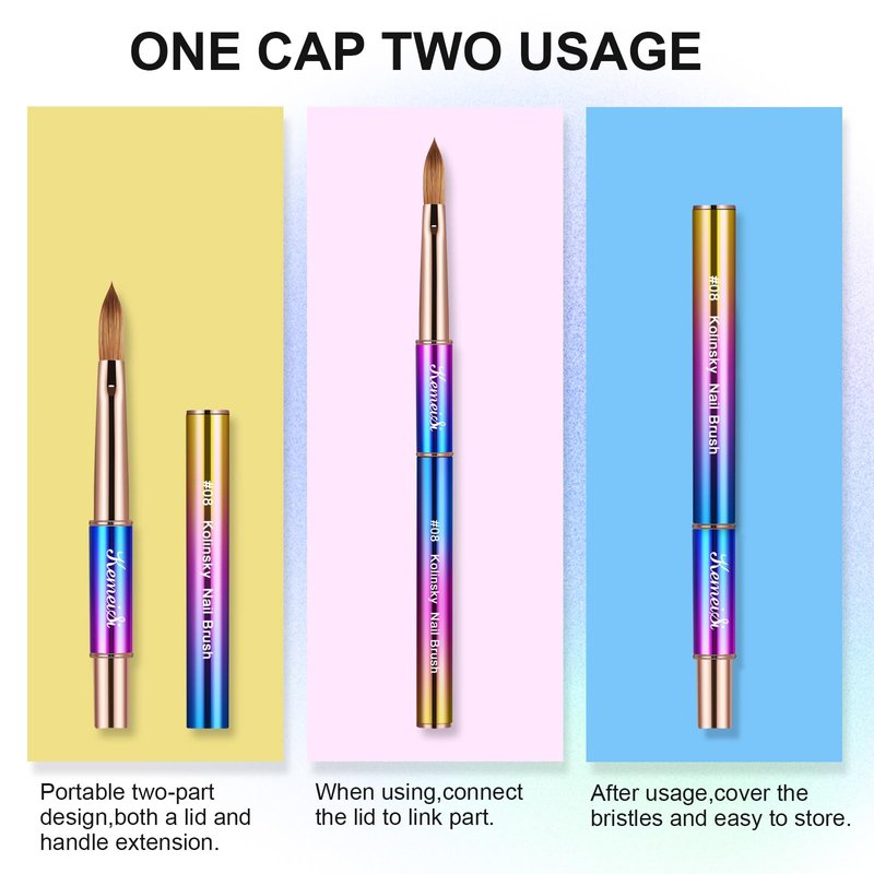- 【100% Kolinsky Acrylic Brush Bristle】KEMEISI Acrylic nail brush set contains size 08 and 1pcs nail art liner brush. The nail brush is made of high quality Kolinsky hair to ensure durability that soft enough to sculpt and shape to any nail shape and size. remarkable soft and flexible with a better powder absorption, natural and smooth, easy to paint.
