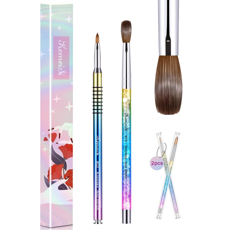 - 【100% Kolinsky Acrylic Brush Bristle】KEMEISI Acrylic nail brush set contains size 10 and size 02. The nail brush is made of high quality Kolinsky hair to ensure durability that soft enough to sculpt and shape to any nail shape and size. remarkable soft and flexible with a better powder absorption, natural and smooth, easy to paint.