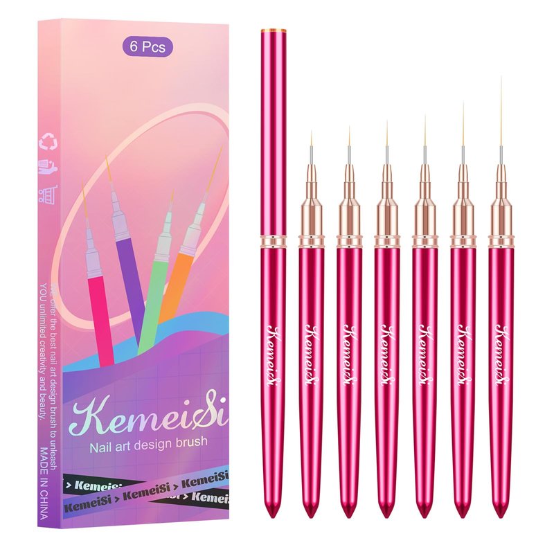 KEMEISI 6Pcs Nail Art Liner Brushes, Striping Nail Art Brush for Gel Polish Painting, Thin Detail Brush Fine Drawing Art Design Pen Size 5/7/9/11/15/25mm