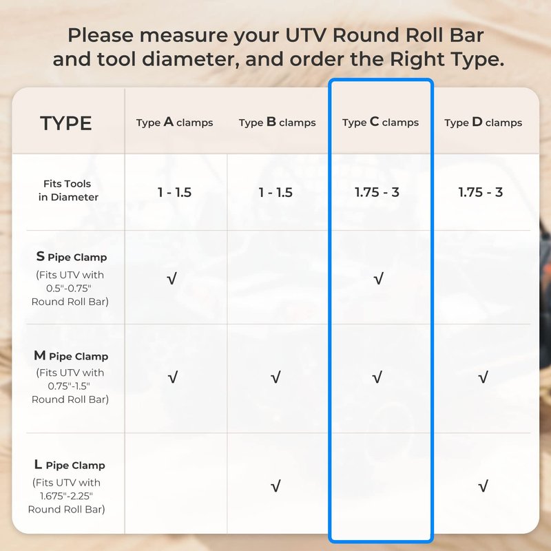 - Wide Compatibility - KEMIMOTO Rubber Tool Clamp fits ATV UTV with a 0.5-inch to 1.5-inch roll bar. The rubber pads make it non-slip on the roll bars. Also Fits RV ladder Jeep off-road adventure with the round tube