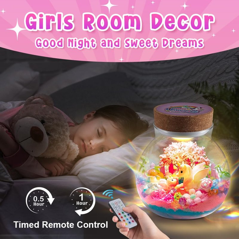 Kenllas Remote Arts and Crafts for Kids, DIY Thickened Glass Unicorn Toys for Girls LED Night Light Up Terrarium Kit Christmas Gifts Toys for Ages 4 5 6 7 8 9 10 11 12 13 Year Old Girls Birthday Gifts