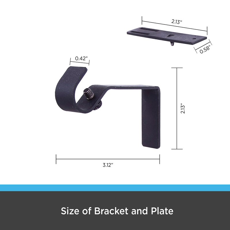Kenney Fast Fit 5/8" No Measure Curtain Rod Brackets, Matte Black