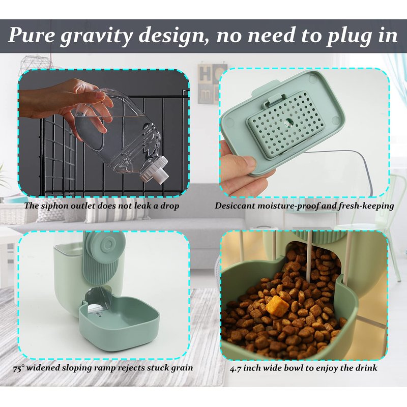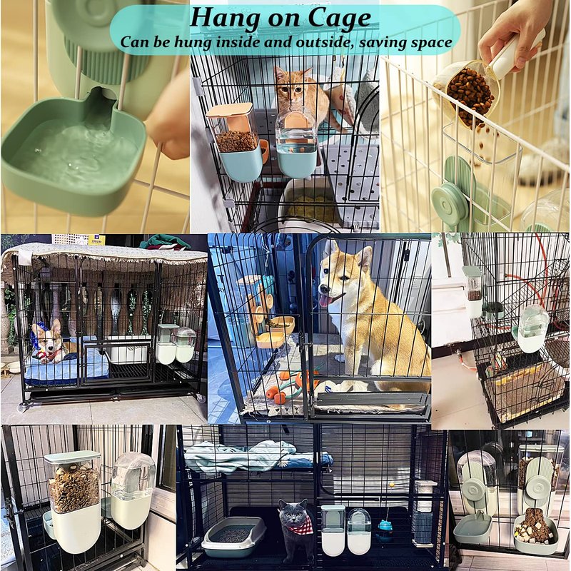 - ✅【Big Capacity Feeder and Waterer】: 1*Feeder, 1*Water dispenser. Large capacity 35oz×2, can hold about 2.2 pounds of food and about 1L water, can last about 3-5 days for small pets, 1-2 days for big pets, you can rest assured to go on vacation, work, party, do not have to worry about pets will be thirsty