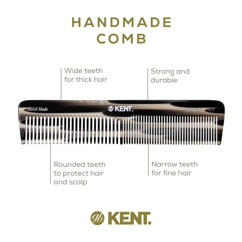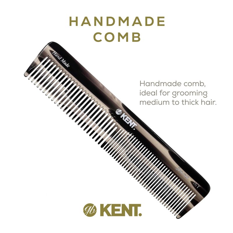 Kent 16T Fine and Wide Tooth Comb - Beard, Hair, Mustache, and Detangling Comb for Men and Women