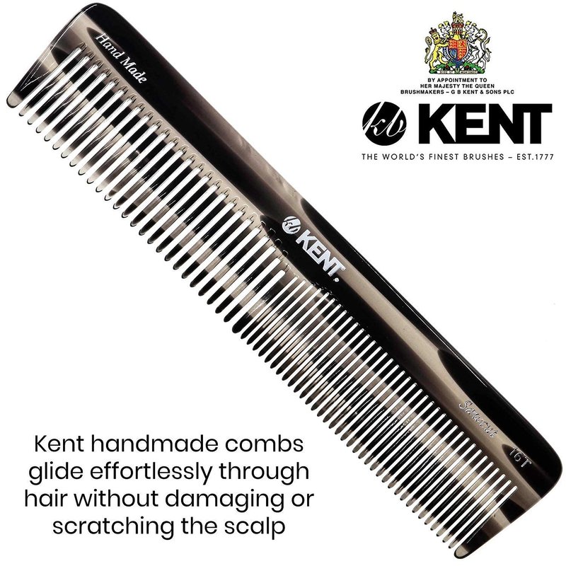 Kent 16T Hair Dressing Table Comb, Fine and Wide Tooth Dresser Comb For Hair, Beard and Mustache, Coarse and Fine Hair Styling Grooming Comb for Men, Women and Kids. Made in England