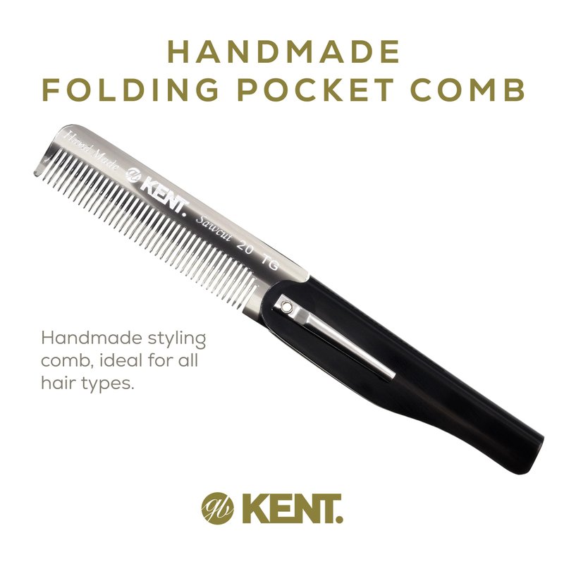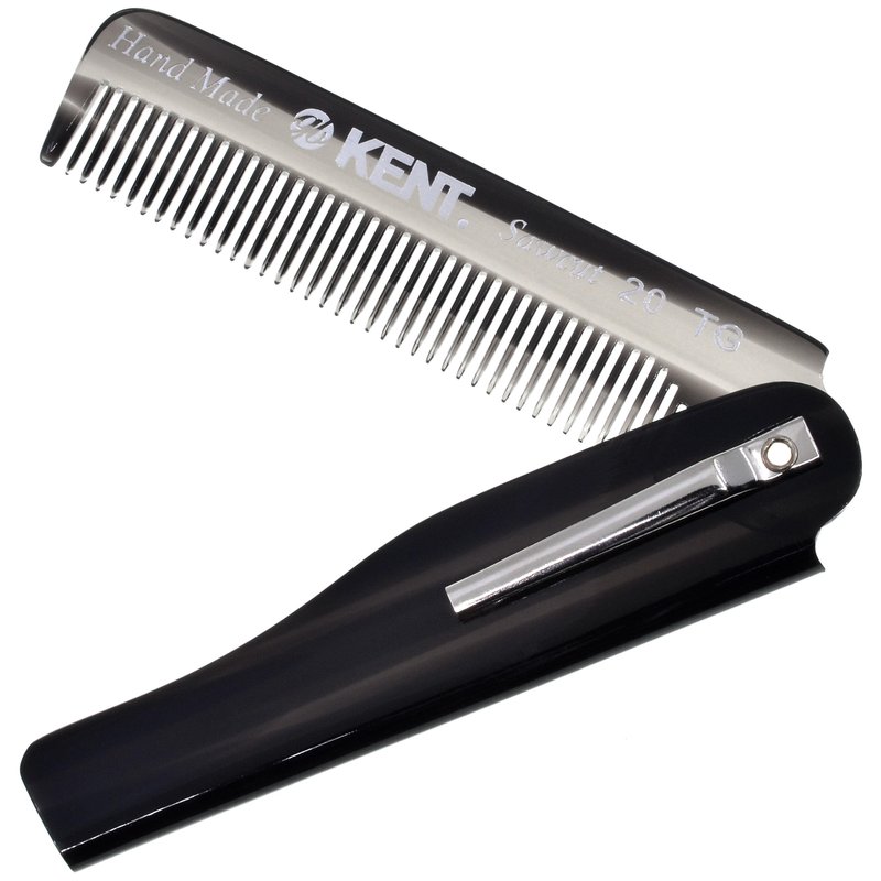Kent 20T Black Graphite Handmade Folding Pocket Comb for Men, Fine Tooth Hair Comb Straightener for Everyday Grooming Styling Hair, Beard or Mustache, Use Dry or with Balms, Saw Cut, Made in England