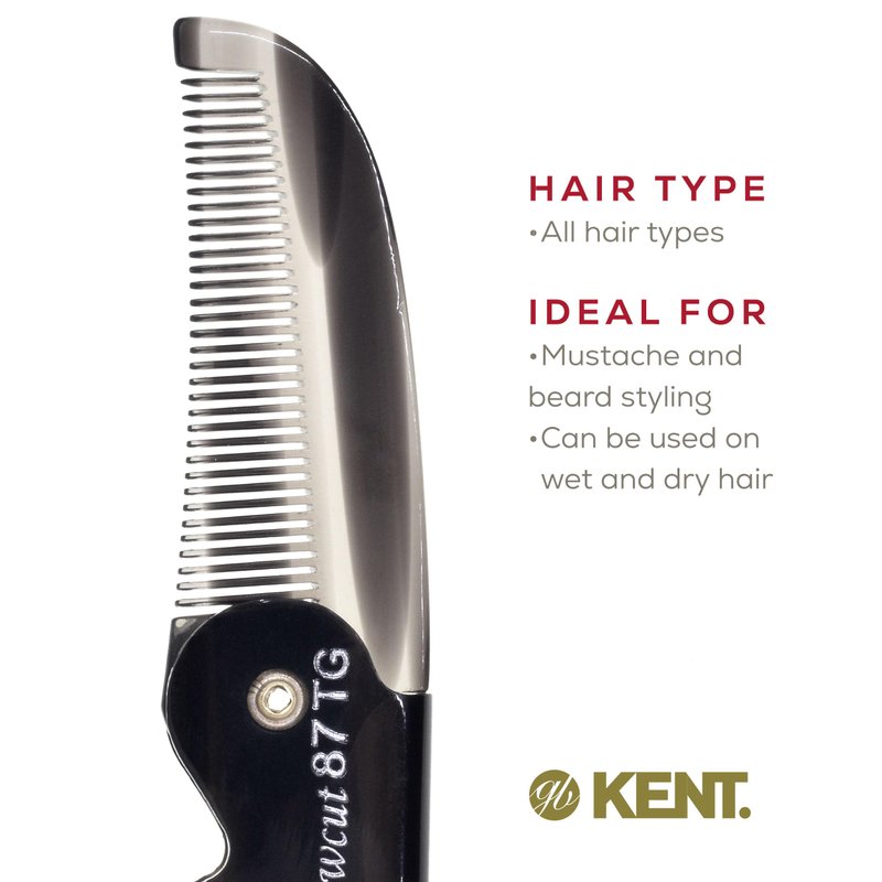 - 4.5 inch open / 2.5 inch closed - Tortoiseshell finish folding mens comb. The best Kent mustache and mustache combs for men hair comb, fits perfectly into your jeans or back pocket so you can groom your facial hair anytime, anywhere