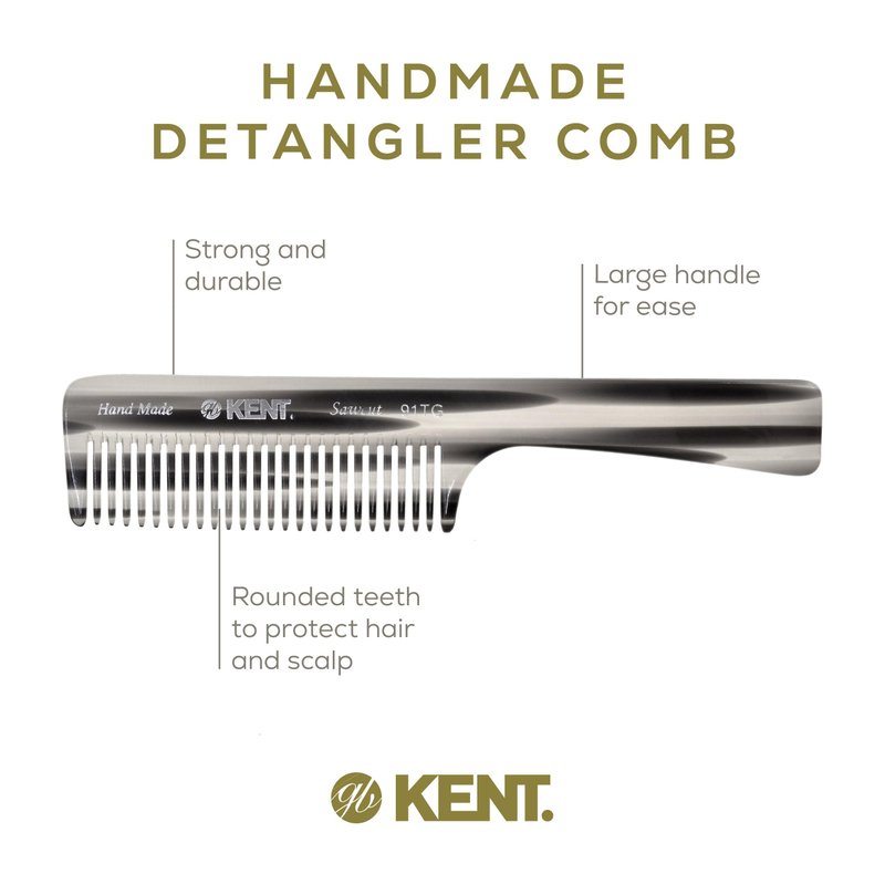 ABOUT KENT'S HANDMADE COMBS: Kent Handmade Combs for Men and Women Range are of excellent quality. Kent hand sawn combs are cut from large sheets of cellulose acetate rather, producing a truly gentle comb whereas molded combs often snag and damage the hair. This material is tactile, flexible and strong. They glide effortlessly through hair without scratching to damaging the hair or scalp. Kent combs have rounded teeth which ensure a smooth and comfortable action. The range includes designs for thick and fine hair, in varying sizes, for both men and women. About Kent: Founded in 1777, Kent Brushes is the world's oldest hairbrush manufacturer and has maintained its British traditions of producing the world's finest hairbrushes and combs ever since. Making the best quality brushes for over 230 years and creating over 250 products. Quality, design and attention to detail go into each brush. They have been the holders of The Royal Warrant through the last nine consecutive reigns of British monarchy. The company continues to retain the craftsmanship and unprecedented quality that is Kent's reputation.Even in today's fast moving, mass-produced assembly lines, they are proud to still be manufacturing many of their original brushes by hand.