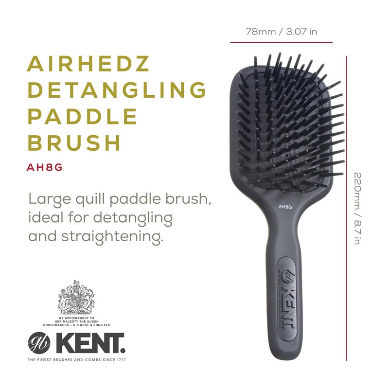 Kent AH8G Airhedz Cushion Paddle Brush - Scalp Massager and Detangler Brush - The Hair Brush for Thick Hair - Scalp Massager Hair Growth Stimulator - Hair Detangler and Curly Hair Brush