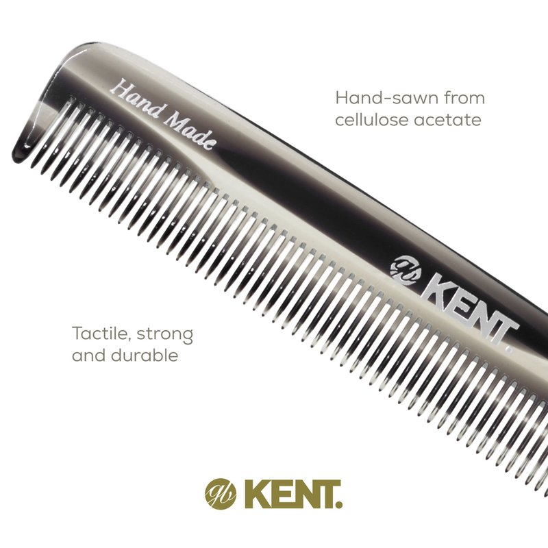 Kent Handmade Combs for Men and Women Range are of excellent quality. Kent hand sawn combs are cut from large sheets of cellulose acetate rather than moulded, producing a truly gentle comb whereas moulded combs often snag and damage the hair. This material is tactile, flexible and strong. They glide effortlessly through hair without scratching to damaging the hair or scalp. Kent combs have rounded teeth which ensure a smooth and comfortable action. The range includes designs for thick and fine hair, in varying sizes, for both men and women. About Kent: Founded in 1777, Kent Brushes is the world's oldest hairbrush manufacturer and has maintained its British traditions of producing the world's finest hairbrushes and combs ever since. Making the best quality brushes for over 230 years and creating over 250 products. Quality, design and attention to detail go into each brush. They have been the holders of The Royal Warrant through the last nine consecutive reigns of British monarchy. The company continues to retain the craftsmanship and unprecedented quality that is Kent's reputation.Even in today's fast moving, mass-produced assembly lines, they are proud to still be manufacturing many of their original brushes by hand.