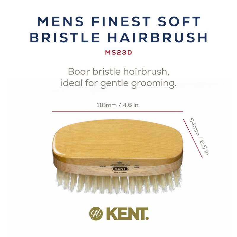 Kent MS23D Finest Men's Military Style Hair Brush - Satin and Beechwood Travel Size Base, Soft Pure White Natural Boar Bristle Ideal for Fine or Thinning Hair and Sensitive Scalps