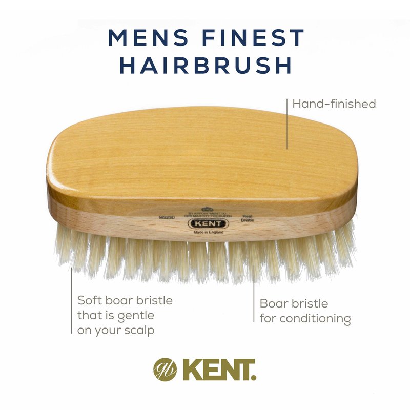 WHAT HAIR LENGTH & TYPE? - Suitable for all hair and beard lengths. The soft bristles are ideal for sensitive scalps or thinning hair. ADVANTAGES: Brushing with natural bristles improves circulation in the scalp which is perfect for stimulating the hair's natural oils to be distributed through the hair keeping it clean, shiny & naturally conditioned. BENEFITS: For healthier and naturally shiny hair, this lifetime lasting travel hairbrush will make it easy for you to tame and groom all your hair and beard needs. ABOUT KENT’s - FINEST MEN LINE: Designs come in various shapes, oval, rectangular and both with handles. Hand finished to perfection and made from finest timbers in the world. The natural bristles are carefully sourced, and tailor cut specifically, to offer different strengths for thick, medium, fine or receding hair. Finest Men's brushes include the Kent MC4, Kent MG3, Kent MS11, Kent MN11, Kent MS23D, Kent MS23, Kent MG2, Kent MN1B, Kent OG2, Kent OG4, Kent OS11, Kent OE1, Kent OG1, Kent OG3, and the Kent OS18.