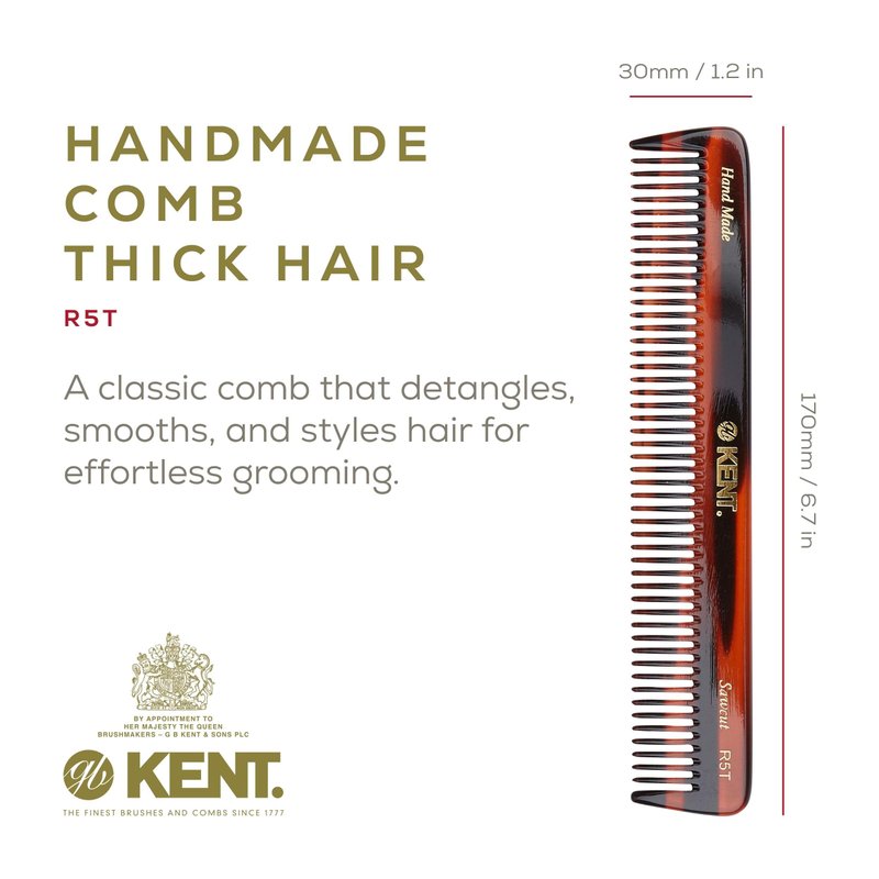 Kent R5T All Coarse Hair Detangling Comb Wide Teeth Dressing Table Comb for Thick Curly Wavy Hair. Hair Detangler Comb for Grooming Styling Hair, Beard and Mustache. Saw-Cut. Handmade in England
