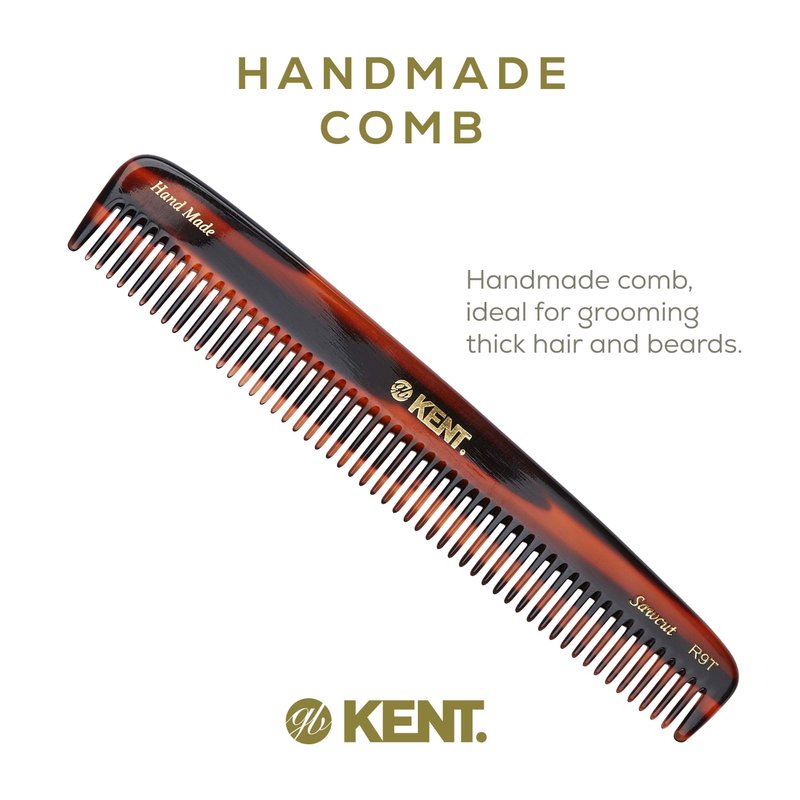 Kent R9T All Coarse Hair Detangling Comb Wide Teeth Dressing Table Comb for Thick Curly Wavy Hair. Hair Detangler Comb for Grooming Styling Hair, Beard and Mustache. Saw-Cut. Handmade in England