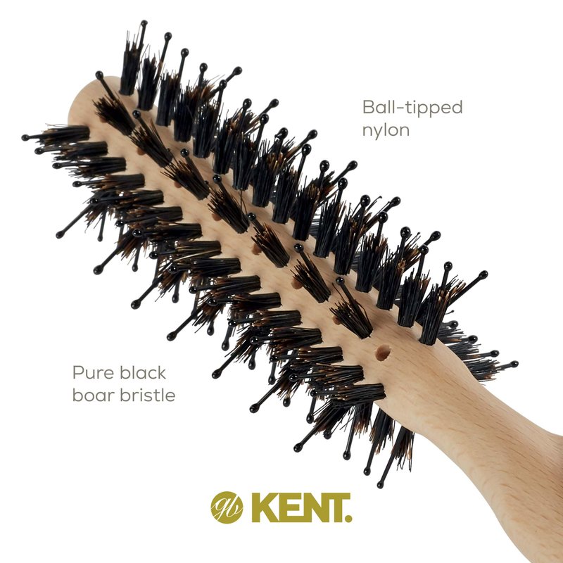 KENT Round Brush for Blow Drying, LPF4, Vented, FSC Certified Beech Wood, Natural Boar Bristle and Nylon, 8.75x1.75x0.6 inches, Black, Unisex, Short Fine Hair