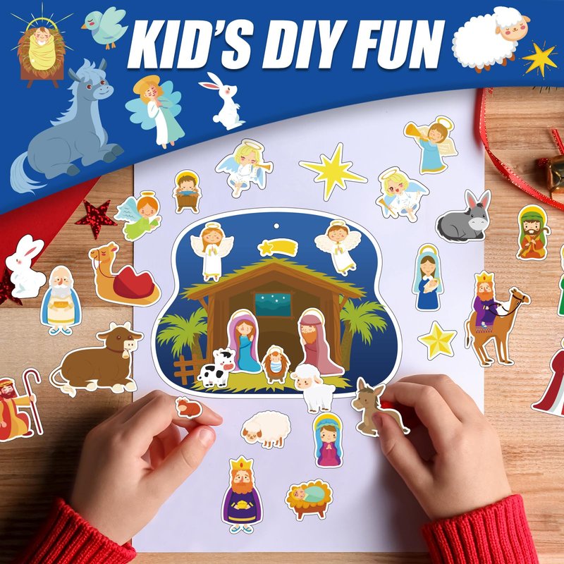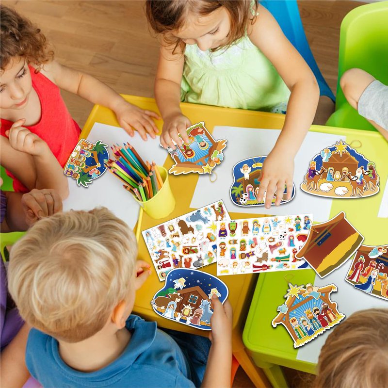 - POPULAR CRAFT FOR KIDS - Try some fresh games with Kids! Just encourage kids to DIY their own Christmas nativity scene craft kits with these simple and fun cards and sticker activities. These craft kits can help to create more haliday atmosphere.