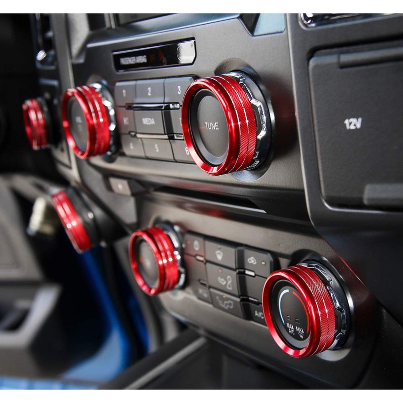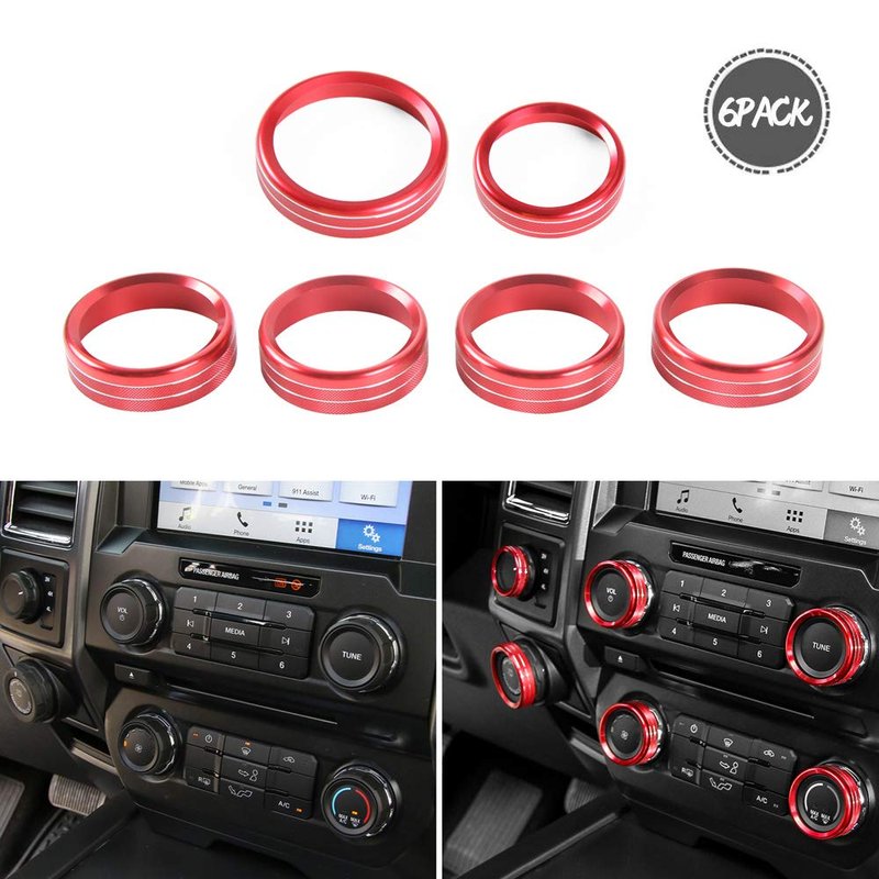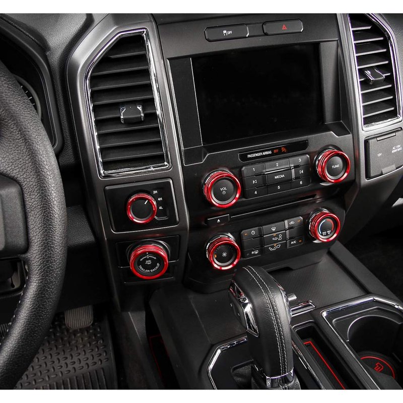 Keptrim for F150 Air Conditioner Switch & Trailer & 4WD & VOL Knob Button Trim for Ford F150 XLT 2016 2017 2018 2019, Red Aluminum, 6pcs (Not for 2021 2022 2023)