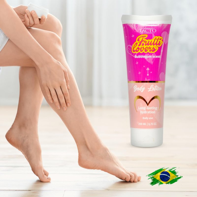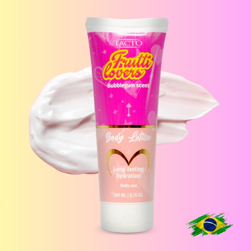 Discover the joy of irresistibly soft skin with Kerabrasil's Frutti Lovers Body Lotion. This 6.76 oz bottle of bubblegum-scented bliss is crafted to provide your skin with long-lasting hydration and a sweet, enchanting fragrance. Our carefully formulated blend combines the hydrating power of Gossypium Herbaceum Seed Oil, Butyrospermum Parkii (Shea) Butter, and a medley of beneficial extracts including Aloe Vera, Chamomile, and Green Tea. Ideal for those seeking a moisturizer that nourishes while it delights the senses, this body lotion is packed with antioxidants and skin-loving ingredients that protect and restore your skin's natural barrier. The lightweight, non-greasy formula penetrates quickly, leaving no residue, just the charming scent of bubblegum and a touchably soft feel. How to Use: Apply a small amount of Frutti Lovers Moisturizing Body Lotion to your palms and gently massage onto your skin until absorbed. No rinsing required. Use daily to achieve soft, beautifully scented skin. Reapply as needed throughout the day.