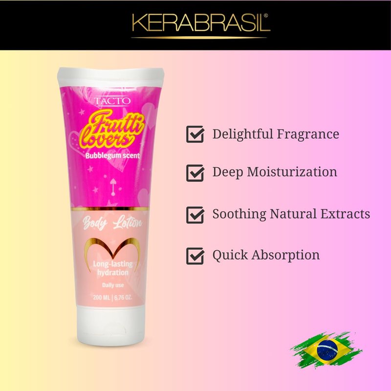 Kerabrasil Frutti Lovers Bubblegum Scented Body Lotion | Deep Hydration | Soft Skin | Long Lasting Hydration | 6.76 oz