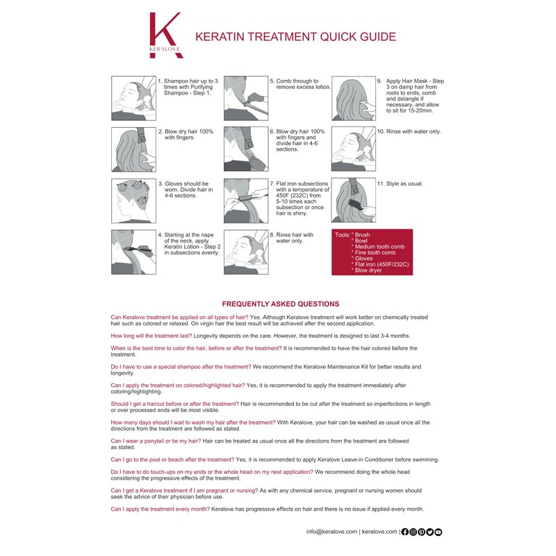 - Effects of the Keralove treatment will last 3-4 months depending of the care you give to your hair.