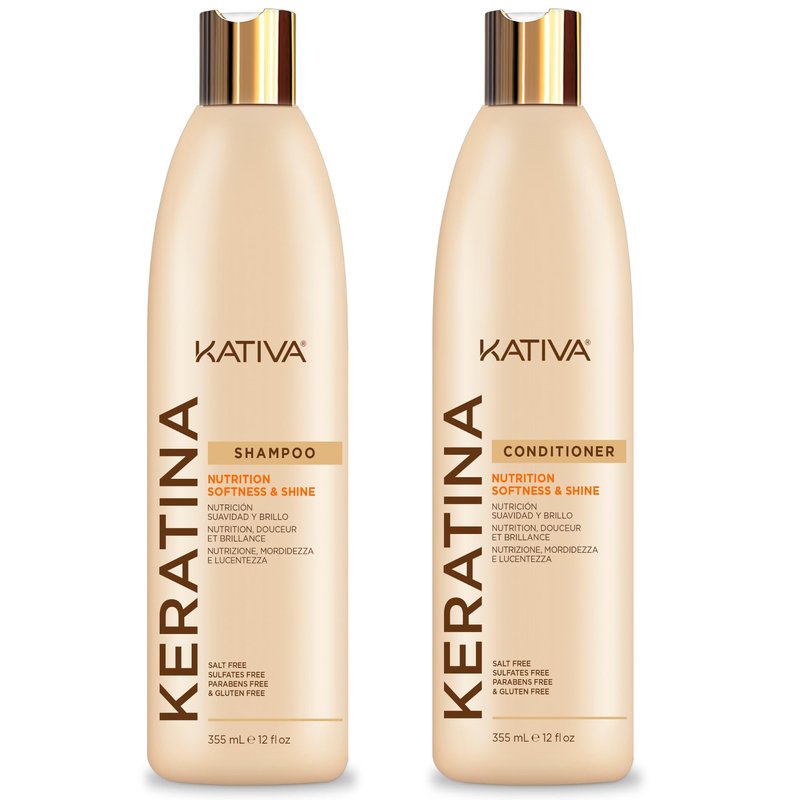 Kativa Keratin Shampoo (355 ML) and Conditioner (355 ML) Set, Kativa Keratin Line, Rebuilds and Repairs Hair, for Extremely Damaged, Sensitized, Dehydrated and Dull Hair, Salt-Free, Sulfate Free, Gluten Free, Paraben Free