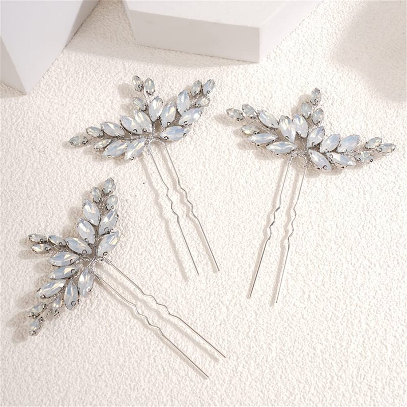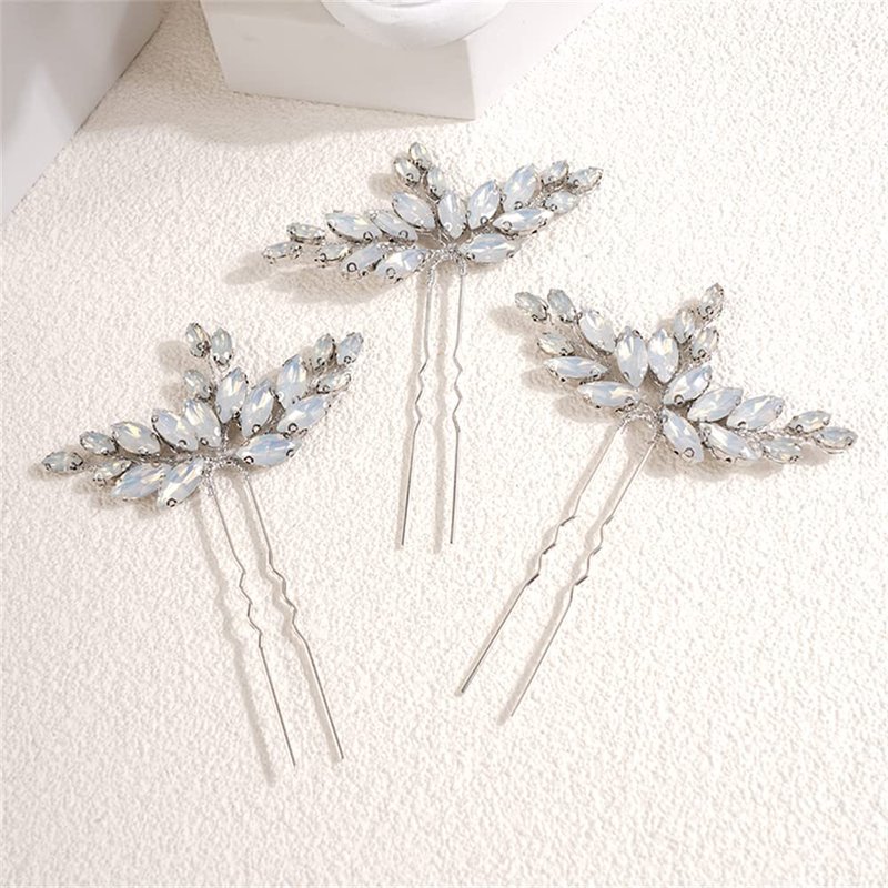 Kercisbeauty 3pcs Opal Crystal Hair Piece Set Rhinestones Hair Pins for Wedding Brides Bridesmaid Women Girls Speical Occasion Jewelry for Updo Hair (Opal)