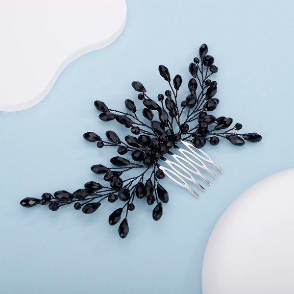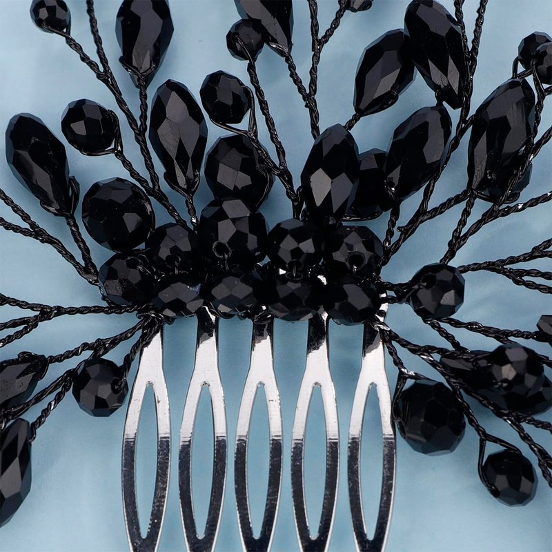 Kercisbeauty Black Beads Hair Comb for Halloween Costume Jewelry Women Girls Wedding Bridal Hair Accessories